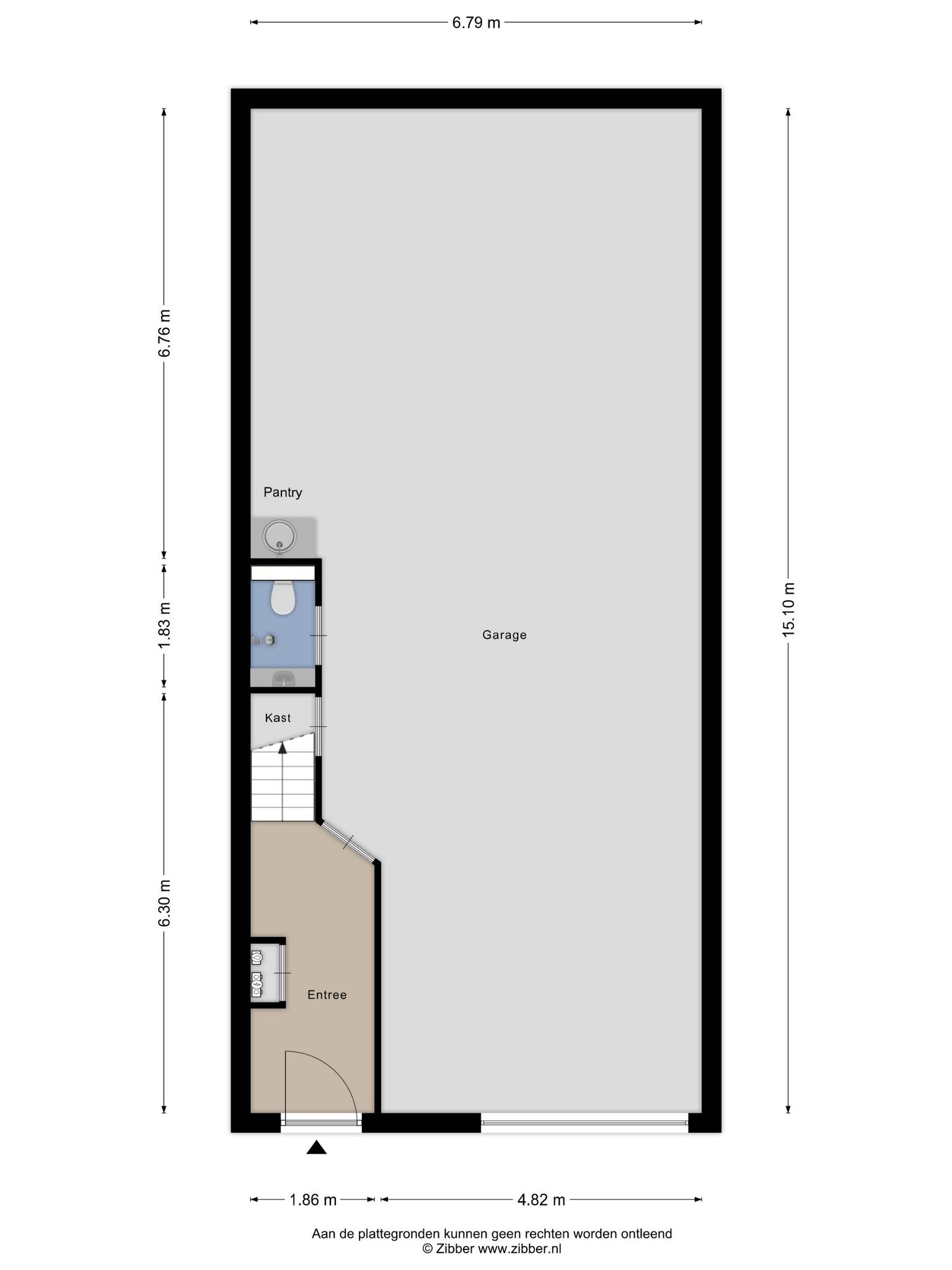 Op de begane grond is een ruime hal gevestigd, welke te bereiken is via de voordeur/gang en ook via de overhead deur. Er is tevens aparte ruimte met een toilet inclusief douche aanwezig.