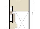 De gang met meterkast biedt via de trapopgang doorgang naar de eerste verdieping. Hier vinden we een kantoorruimte aan de voorzijde en opslagruimte op de vide boven de hal.