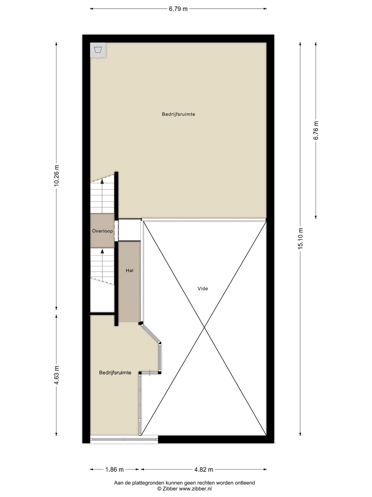 De tweede etage is gesplitst in een hal en twee kantoorruimtes.