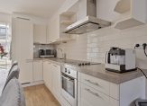 Bij binnenkomst word je verwelkomd in een ruime hal met een meterkast en een stijlvol zwevend toilet met fontein. De lichte, tuingerichte woonkamer is voorzien van een mooie laminaatvloer en biedt directe toegang tot de zonnige en diepe achtertuin, compleet met een praktische berging en een achterom. De open keuken is netjes en uitgerust met diverse inbouwapparatuur, waardoor koken hier een plezier is.