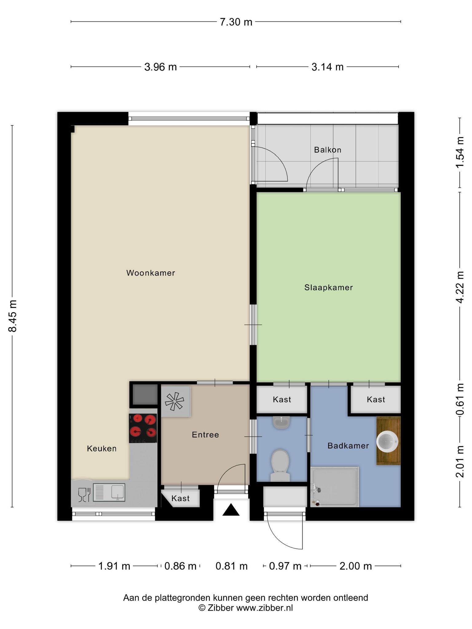 Via de hal voorzien van een video-intercom betreed je de woning. Doorgang naar de woonkamer welke je doorgang geeft tot het balkon gelegen op het zuiden. Aan de keuken grenst zich de hoofdslaapkamer en balkon. De badkamer is bereikbaar vanuit de slaapkamer en beschikt over een douche en wastafel.