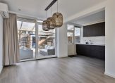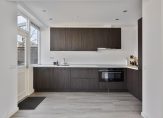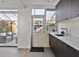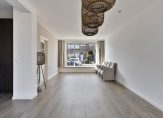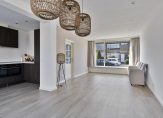 De woonkamer is licht door de grote ramen. Aan de tuinkant heeft de woonkamer een schuifpui naar de tuin en een moderne keuken voorzien van alle gemakken, zoals een grote brede oven, inbouw koelkast/vriezer.