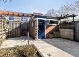 Ruime achtertuin op het zuidwesten, voorzien van stenen schuur en achterom.