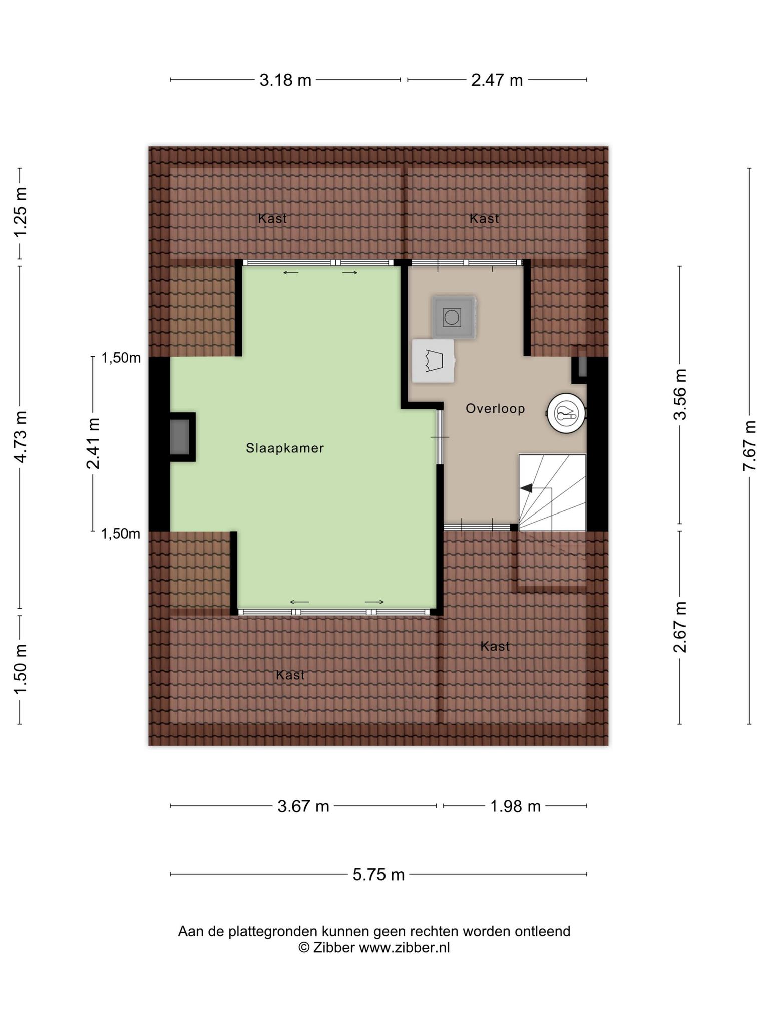 De tweede verdieping herbergt nog een slaapkamer, met aan beide kanten een dakkapel. De overloop heeft plek voor een wasmachine en droger.