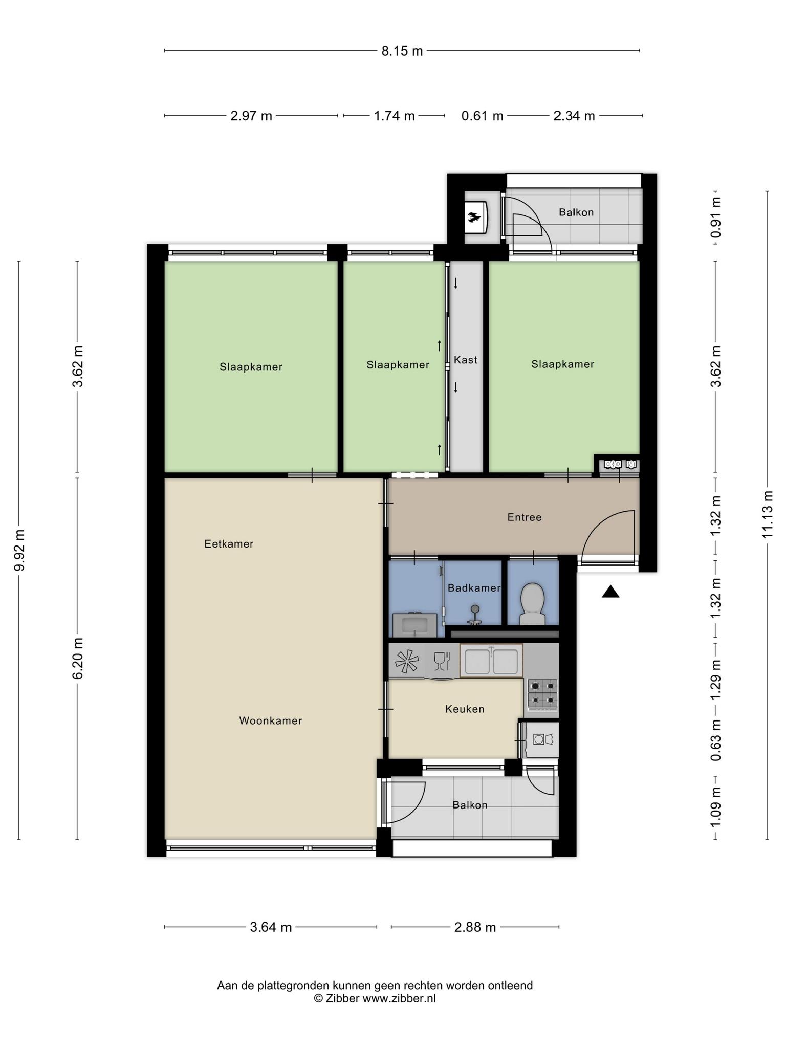 – Er zijn drie goede slaapkamers aanwezig;