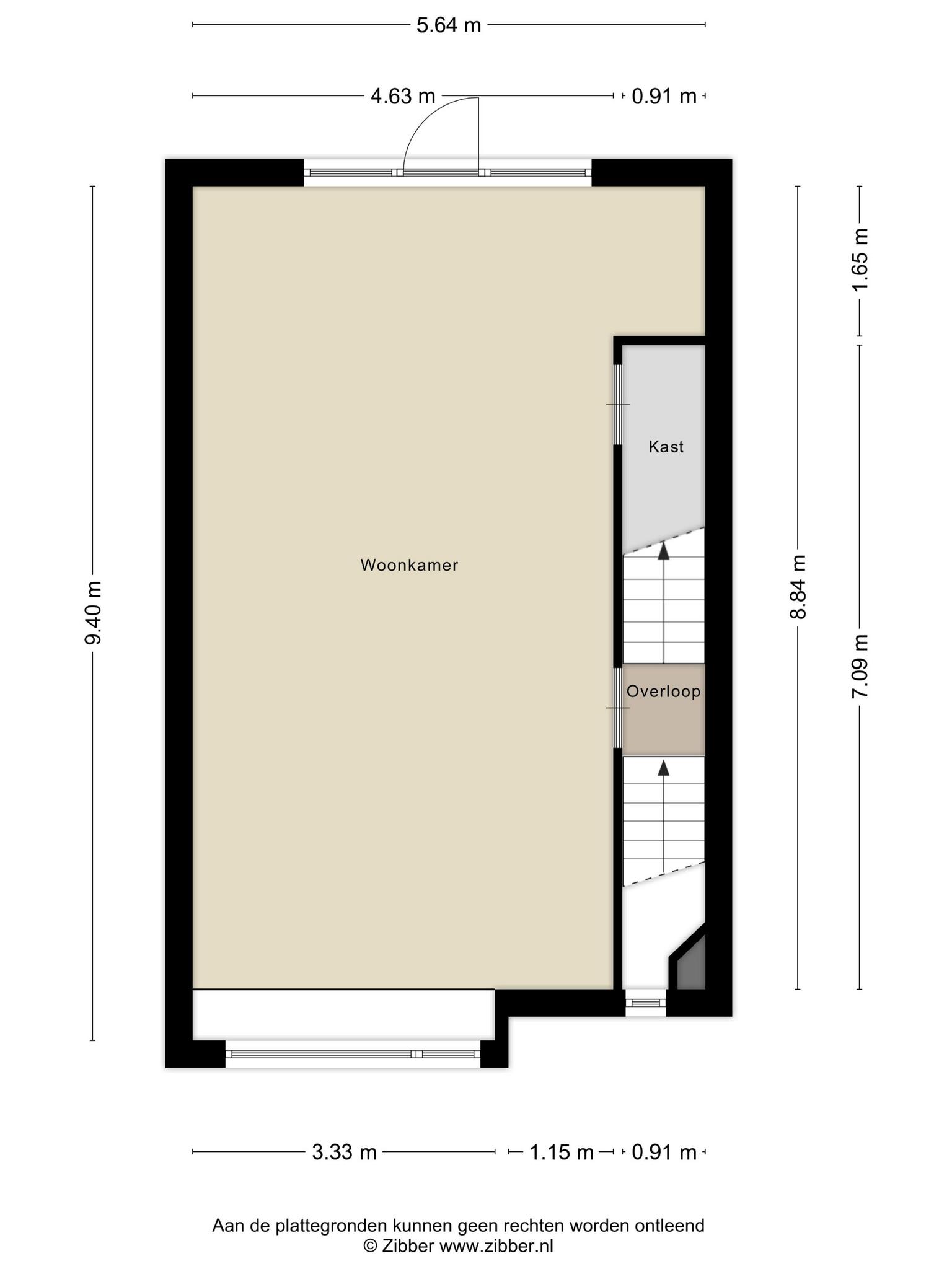 De ruime woonkamer op de eerste verdieping vormt het hart van het huis, met genoeg plek voor een gezellige zithoek en een eettafel. Het is mogelijk om op deze verdieping een keuken te plaatsen, alle aansluitingen zijn daar al.