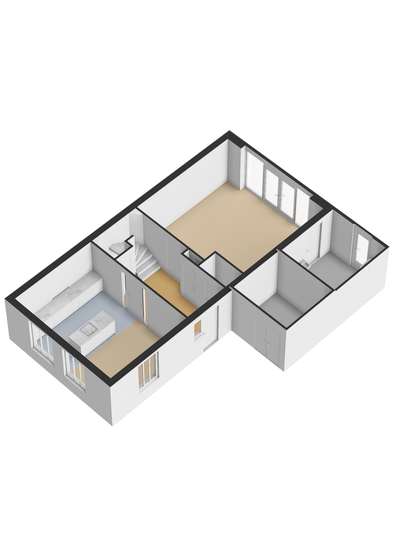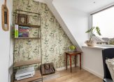 In de woon- en eetkamer geniet je van veel natuurlijk licht, dankzij de grote ramen. De keuken is voorzien van alle moderne gemakken. Op de begane grond vind je ook de eerste van de zeven kamers.
