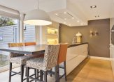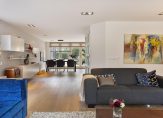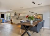 Kom gauw binnen via de ruime hal met ingebouwde garderobekasten en voel je meteen thuis in de lichte woonkamer, omringd door grote ramen die zorgen voor prachtige licht inval. Geniet van de gezellige gas open haard in deze koude maanden, terwijl de harmonicadeuren naar de tuin je in de zomer naadloos van binnen naar buiten leiden. De moderne open keuken is een droom voor keukenprinsen en -prinsessen: een stijlvol kookeiland, luxe apparaten zoals een Quooker, inductiekookplaat en vaatwasser. De handige vaste kastenwand is uitgerust met onder meer een inbouw koffiemachine, oven, combi-oven, twee warmhoudlades, koelkast en vriezer. De voormalige garage is slim omgetoverd tot een praktijk- kantoorruimte, ideaal voor thuiswerkers. De prachtige houten vloer zorgt voor een mooie afwerking en de vloerverwarming over de gehele begane grond zorgt voor een comfortabel warm gevoel.