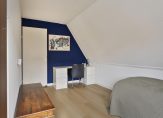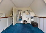 We gaan door naar de eerste verdieping, deze biedt een goed afgewerkte badkamer met ligbad, separate douche en dubbele wastafel met meubel. Op deze woonlaag vind je verder twee slaapvertrekken, waarvan de ruime master bedroom over een walk-in closet beschikt! Voorheen was deze walk-in closet een slaapkamer, je kan dus eenvoudig een extra slaapkamer op deze verdieping creëren. Extra bergruimte is slim weggewerkt onder het schuine dak, bereikbaar vanaf de overloop. We nemen de vaste trap naar de zolderetage, je vindt hier nog eens twee slaapkamers. Op de voorzolder is de opstelplaats voor wasmachine, droger en cv-ketel. Ook is er een handige bergvliering, bereikbaar via de vlizotrap, perfect voor alle spullen die je niet dagelijks nodig hebt.