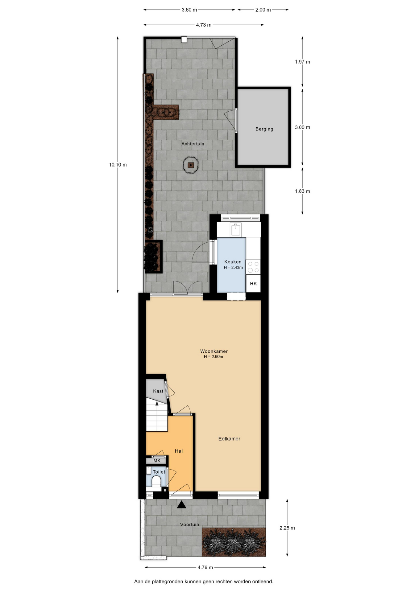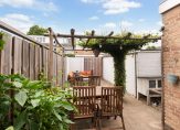 De tuin op het zuidoosten is een heerlijke plek om te genieten. Onder de pergola met druivenstruik vind je in de zomer de perfecte schaduwplek. Verder beschik je over een stenen berging en een praktische achterom.