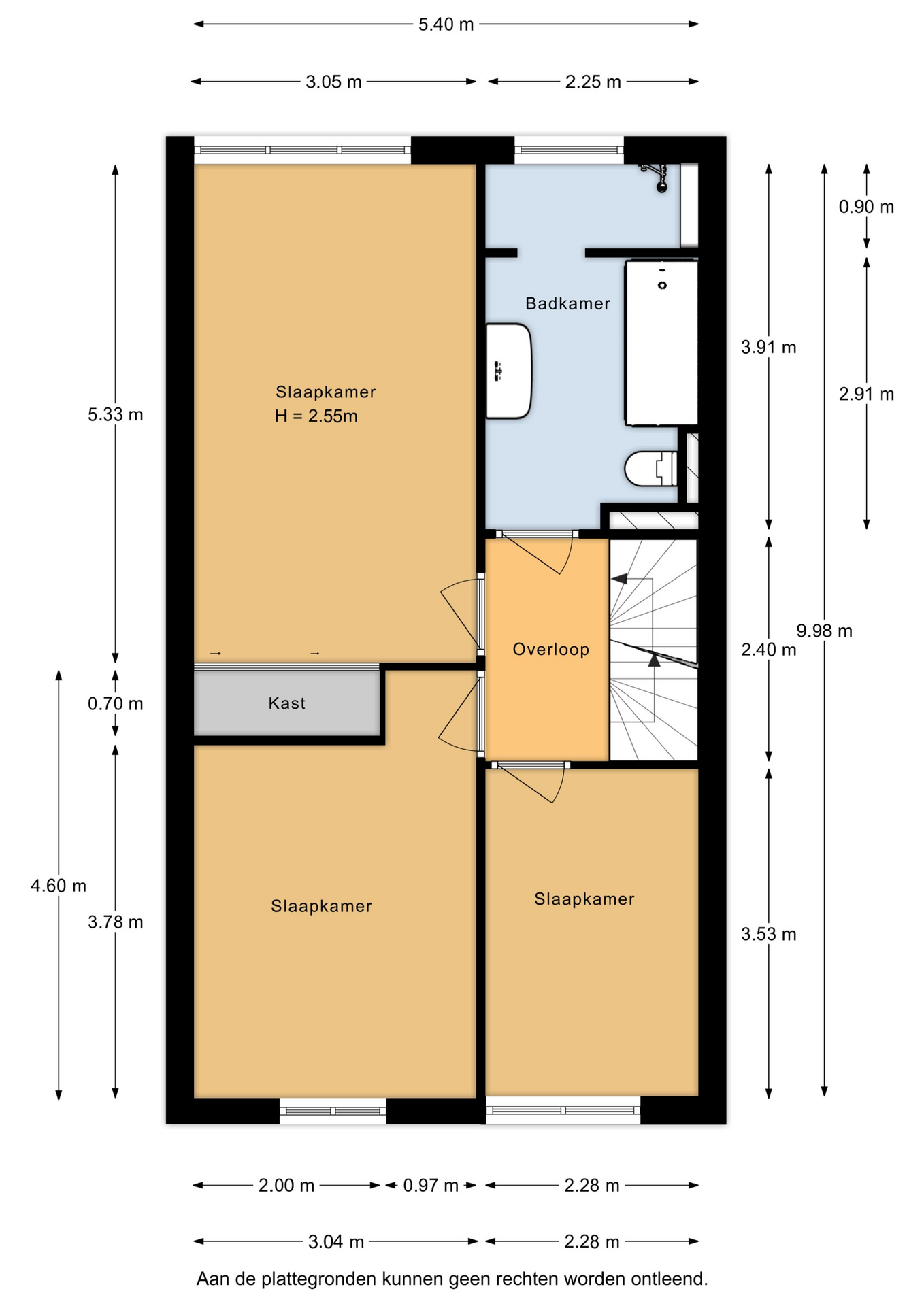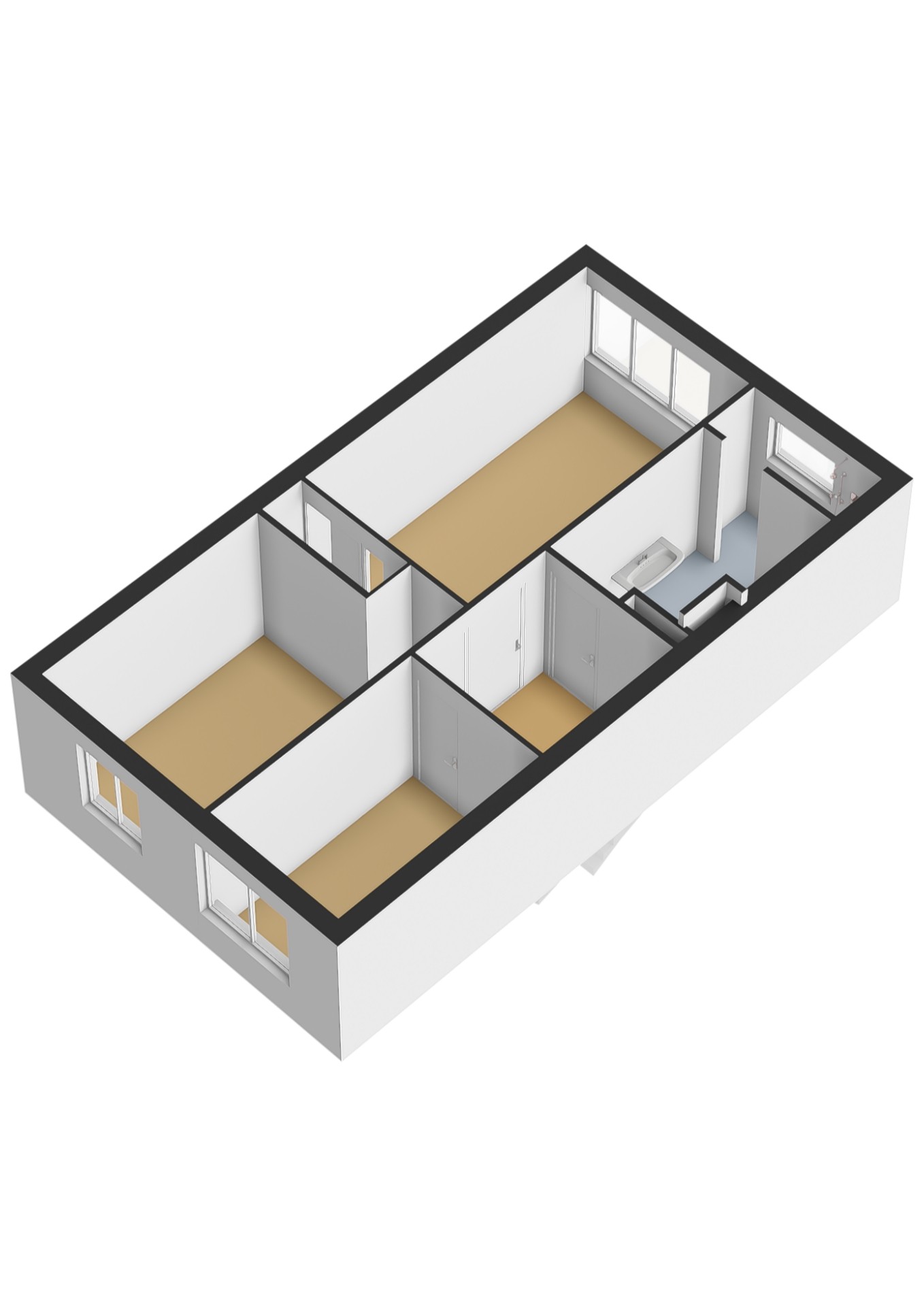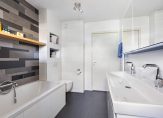 Royale overloop met toegang tot drie slaapkamers van ca. 16 m2, 11,5 m2 en 10 m2. De licht betegelde badkamer is netjes afgewerkt en voorzien van een bad, aparte douche, dubbele wastafel en 2e toilet. Op de tweede verdieping is een ruime slaapkamer/werkkamer met toegang tot het dakterras. Tevens treft u hier ook de technische ruimte uitgevoerd met C.V.-ketel en opstelplaats voor de wasmachine en droger. Op deze verdieping is een vijfde slaapkamer te realiseren.