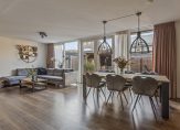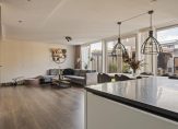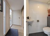 Entree, hal met toiletruimte en toegang tot het woongedeelte. De woning is voorzien van een royale en lichte woonkamer. De gehele voorgevel is voorzien van meerdere ramen die voor veel lichtinval zorgen. De keuken is onder andere uitgerust met een kookeiland waar je kan koken maar ook gezellig aan de bar kan zitten. Daarnaast zijn er nog diverse inbouwapparatuur aanwezig zoals een afzuigschouw, vaatwasser en combi-oven. De openslaande deuren zorgt in de warme zomermaanden voor de ideale verbinding tussen binnen en buiten. De gehele benedenverdieping is afgewerkt met een prachtige laminaatvloer.
