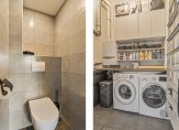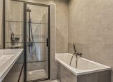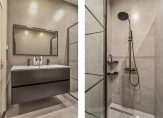 Door naar de eerste verdieping, hier vinden we drie slaapkamers, een berging en de badkamer. De master bedroom is voorzien van een airco. Deze luxe badkamer is voorzien van een ligbad, douchecel en een wastafelmeubel met dubbele kranen en een grote spiegel. De bergruimte heeft aansluitingen voor wasmachine en droger en de opstelplaats voor de cv-ketel. Via de trap in de berging krijg je toegang tot de grote bergvliering.