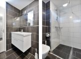 Op de eerste verdieping bevinden zich een ruime slaapkamer en een comfortabele badkamer. De badkamer is 5 m² groot en voorzien van een toilet, wastafel en inloopdouche.