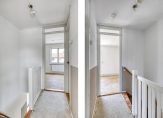 Via de ontvansthal toegang tot een toiletruimte, trapopgang en het woongedeelte. Lichte straatgerichte woonkamer met trapkast. Dichte keuken is aan de achterzijde gesitueerd, voorzien van eenvoudig keukenblok en opstelplaats voor de CV-ketel. De deur in de keuken geeft doorgang naar de achtertuin op het noordwesten. In de achtertuin staat een vrijstaande stenen berging. Door met de trap naar de eerste verdieping. Hier vinden we via de overloop drie slaapkamers. De master bedroom heeft een ensuite badkamer.