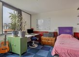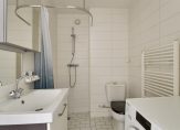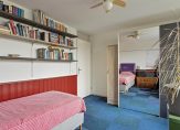 We nemen de trap naar de verdieping. Via de overloop heb je toegang tot de eerste slaapkamer, welke zich aan de voorzijde bevindt. Aan deze slaapkamer is ook een aparte ruimte waar de opstelplaats voor de wasmachine, cv-ketel, zonneboiler en mechanische ventilatie zich bevindt. De hoofdslaapkamer is aan de achterzijde gesitueerd en kijkt uit op de achtertuin. Centraal bevindt zich de betegelde badkamer met douche, tweede toilet en wastafel met meubel.