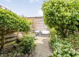 Voor het opbergen van je spullen is er een bergvliering aanwezig, bereikbaar via het luik in de voorste slaapkamer. Voor het buitenleven is er een fijne groene achtertuin aanwezig welke is voorzien van een houten berging en achterom. De schuifpui in de woonkamer creëert een ideale verbinding tussen binnen en buiten.