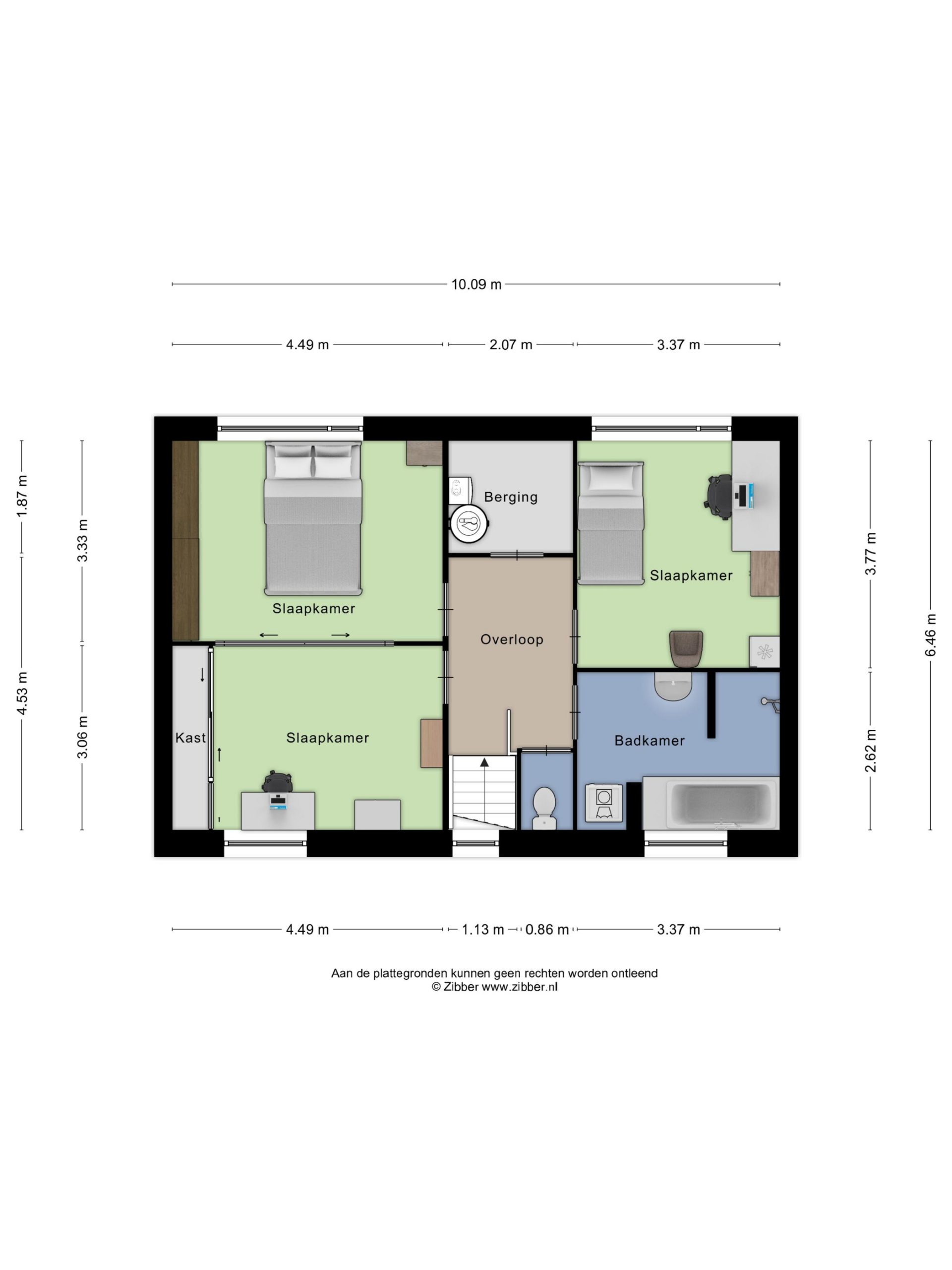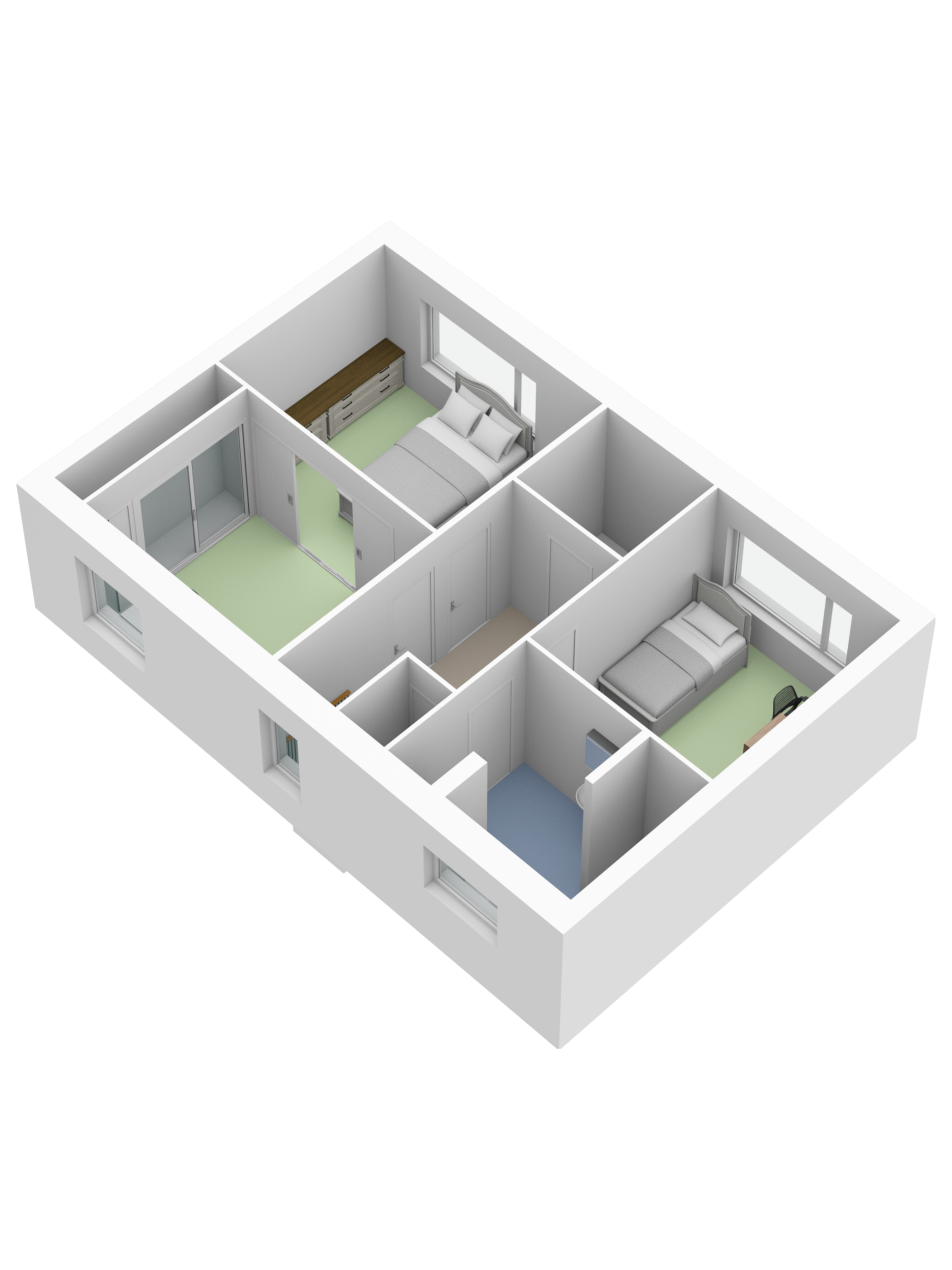 Via de trap kom je terecht op een ruime overloop. Vanaf hier heb je toegang tot de twee ruime slaapvertrekken, de badkamer, berging en een apart toilet. De ouderslaapkamer is momenteel samengevoegd doormiddel van een schuifdeur met een andere kamer. Uiteraard kunnen deze kamers weer makkelijk gesplitst worden tot twee zelfstandige kamers, waardoor je in totaal drie slaapkamers tot je beschikking krijgt. De ruime badkamer beschikt over een inloopdouche, ligbad, wastafel en wasmachine- en droger-aansluiting. Separate toiletruimte en de inpandige berging met de technische installaties. Ook op de verdieping is een airco aanwezig.