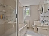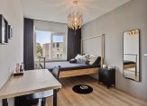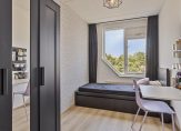 Op de vierde verdieping bevindt zich een ruime slaapkamer en een badkamer, voorzien van een ligbad, een separate douche, een dubbele wastafel en een toilet. Daarnaast zijn er nog twee extra slaapkamers op de bovenste etage. Deze verdieping biedt ook een terraskamer/overloop met een schuifpui naar het ruime dakterras. Tevens is er een aparte bergruimte met een opstelplaats voor een wasmachine, droger en cv-ketel.