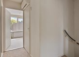 Via de gang in de hal trapopgang naar de eerste verdieping. Deze eerste verdieping heeft VIER slaapkamers, waarvan de grote slaapkamer ook een wastafel. Een (gedateerde) badkamer, met douche, toilet en wastafel.