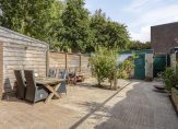 De tuin is ruim en zonnig. Ook is er een stenen berging met genoeg plek voor het stallen van fietsen.