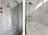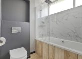 Op de eerste verdieping vind je drie fijne slaapkamers. De badkamer is voorzien van een ligbad en douche. Verder is er ook nog een nette wastafel aanwezig en een tweede toilet. Via een vaste trap kom je op zolder, waar je nog een verrassend ruime vierde slaapkamer vindt met een tweede badkamer. De badkamer is voorzien van een douche, toilet en een wastafel. Ook is er genoeg plek om spullen op te bergen en zijn wasmachines handig weggewerkt door middel van knieschotten.