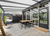 Zin in zon? Vanuit de woonkamer stap je zo onder de overkapping de tuin in – heerlijk op het zuiden! Een fijne plek om te relaxen, barbecueën of gewoon lekker te genieten van de rust en privacy.