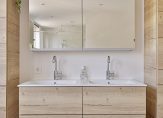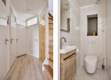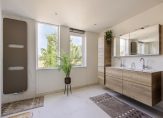 – Nieuwe luxe badkamer (2023) welke beschikt over een prachtig badkamermeubel met dubbele wastafel, designradiator, elektrische vloerverwarming, ruime douche met regendouche, nisje en glazen wand;
