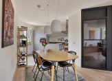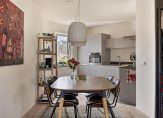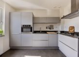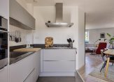 De woonkamer en keuken staan met elkaar in verbinding. Dit zorgt voor een overzichtelijk en ruimtelijk geheel.