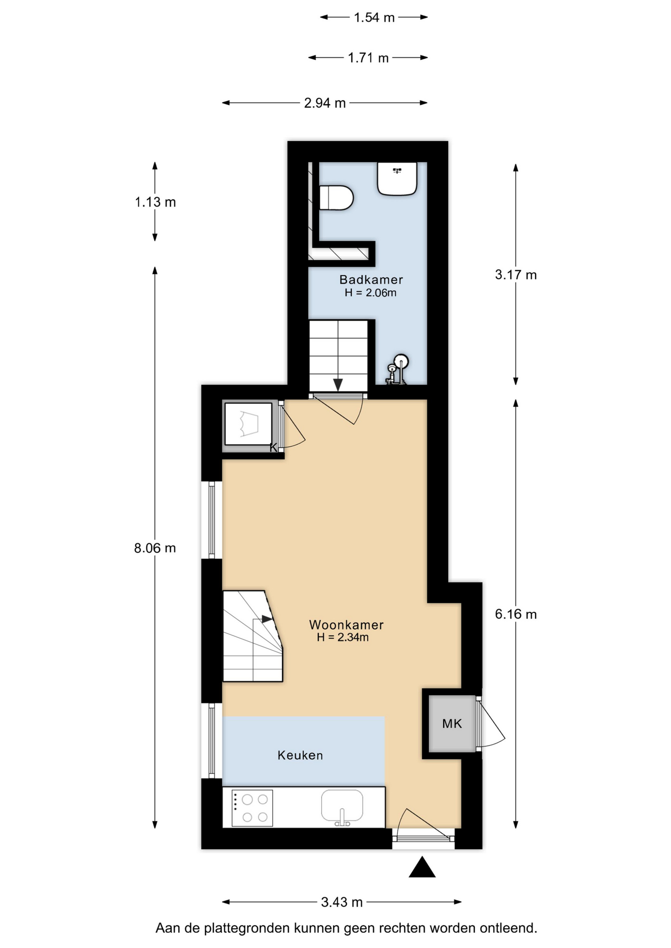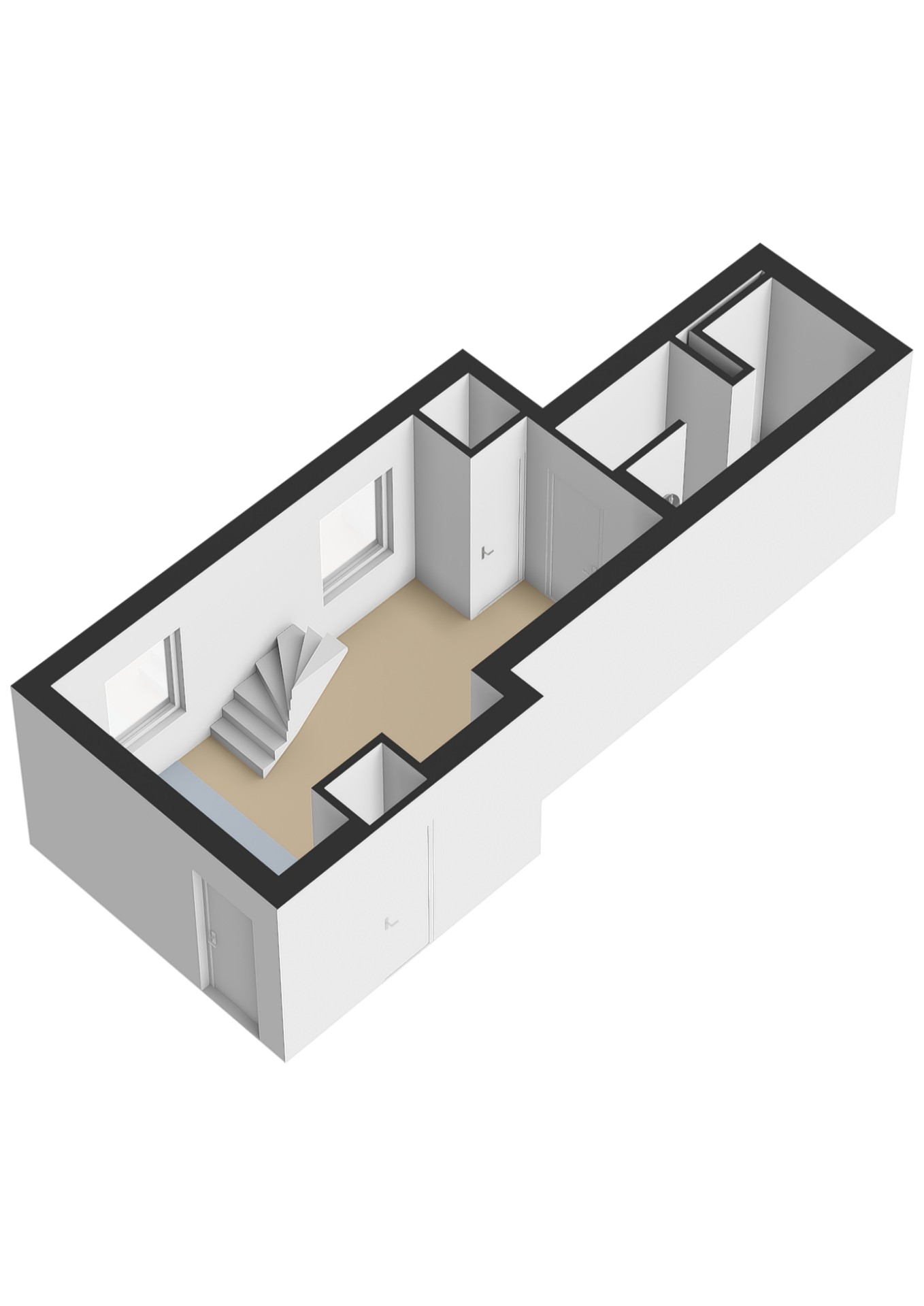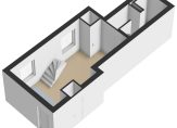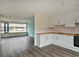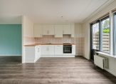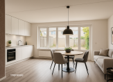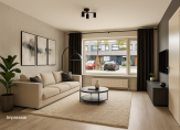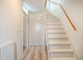 In de hal bevindt zich de trapopgang, meterkast, het toilet en toegang tot de woonkamer. De ruime woonkamer biedt voldoende mogelijkheden. En met een beetje inbeelding kun je van de keuken en woonkamer een mooie open woonkeuken maken. Zo is dit ook afgebeeld in de impressies. Verder is de keuken voorzien van een oven, gaskookplaat en afzuigschouw.