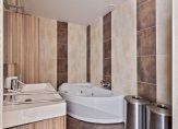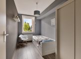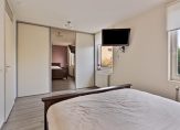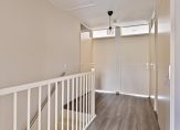 Middels de overloop toegang tot een drietal slaapvertrekken, inpandige badkamer, apart tweede toilet en een gesloten kast met de cv-ketel. De ouderslaapkamer van ca. 8,5 m² is aan de voorzijde van de woning gelegen en voorzien van een vaste kastwand, aan de achterzijde bevinden zich de andere twee slaapkamers. Verder beschikt deze verdieping over een laminaat vloer en zijn de slaapkamers uitgerust met rolluiken. De badkamer is uitgerust met een (stort)douche, hoekligbad/whirlpool, dubbele wastafel met meubel en is daarnaast volledig betegeld.