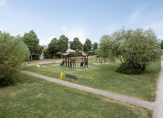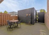 Zoals eerder beschreven, beschikt deze woning over een voor- én achtertuin, waarbij de achtertuin op het zuiden is georiënteerd en voorzien van achterom en vrijstaande houten berging. Vanuit de achtertuin loop je zo het achtergelegen speelveld met voetbalkooi en met vernieuwde speeltoestellen op.