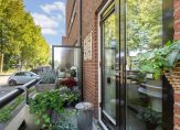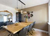 Op de eerste verdieping bevindt zich de ruime en lichte woonkamer: een heerlijke plek om thuis te komen met een groot raam aan de zijkant van de woning en openslaande deuren die toegang geven tot het royale dakterras van maar liefst 45 m2, gelegen op het zuidwesten. Dit terras is in zijn geheel in 2024 opnieuw aangelegd met tegels en schuttingen. Hier geniet je de hele dag door van de zon – perfect om te loungen, buiten te eten of gezellig met vrienden te borrelen.