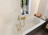 Via de woonkamer leidt een trap naar de tweede verdieping. Hier bevindt zich de masterbedroom die extra luxe is uitgevoerd met twee inloopkasten, paneeldeuren en natuurstenen vloer met een combinatie van leisteen. De moderne badkamer tevens uit 2023 is een echte eyecatcher, voorzien van een ligbad, dubbele wastafel, inloopdouche en een stijlvolle afwerking.