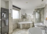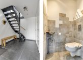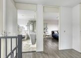 Op de eerste verdieping bevinden zich drie ruime slaapkamers. Dankzij de grote ramen is ook hier veel natuurlijk licht. Ideaal als kinderkamer, logeerkamer of thuiswerkplek. De badkamer is compleet met zowel een ligbad als aparte douche en dubbele wastafel. Daarnaast is er een apart toilet en een bergruimte met aansluiting voor de wasmachine.