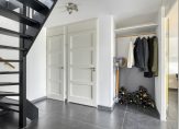 Je komt de woning binnen via de overdekte entree onder de carport. De woning is slim ingedeeld en zeer onderhoudsvriendelijk. De hal biedt volop ruimte voor een garderobe, opbergruimte en het toilet.