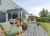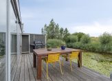 Stap je naar buiten dan sta je in je eigen openlucht woonkamer: het zonneterras. De westelijk gelegen tuin heeft volop zon in de middag en avond. Van maart tot november is dit dé plek om buiten te leven en heerlijk te ontspannen aan het water. De zon schijnt tot hij ondergaat en de prachtige zonsondergangen zijn dan nog een extra cadeautje.