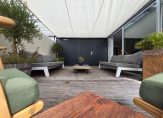 Op warme zomerdagen zorgt het zonnezeil voor verkoeling en een ultiem vakantiegevoel. Combineer dat met de tweepersoons sauna in de aangrenzende berging en je beschikt over je eigen wellnesslocatie aan huis.