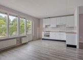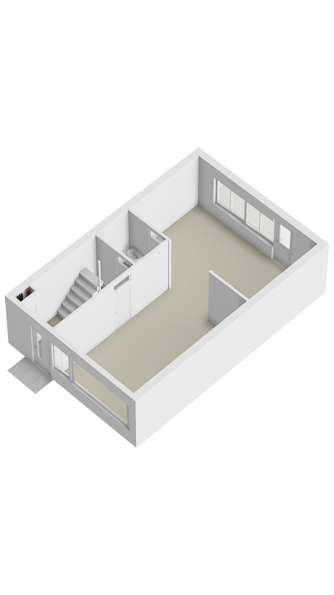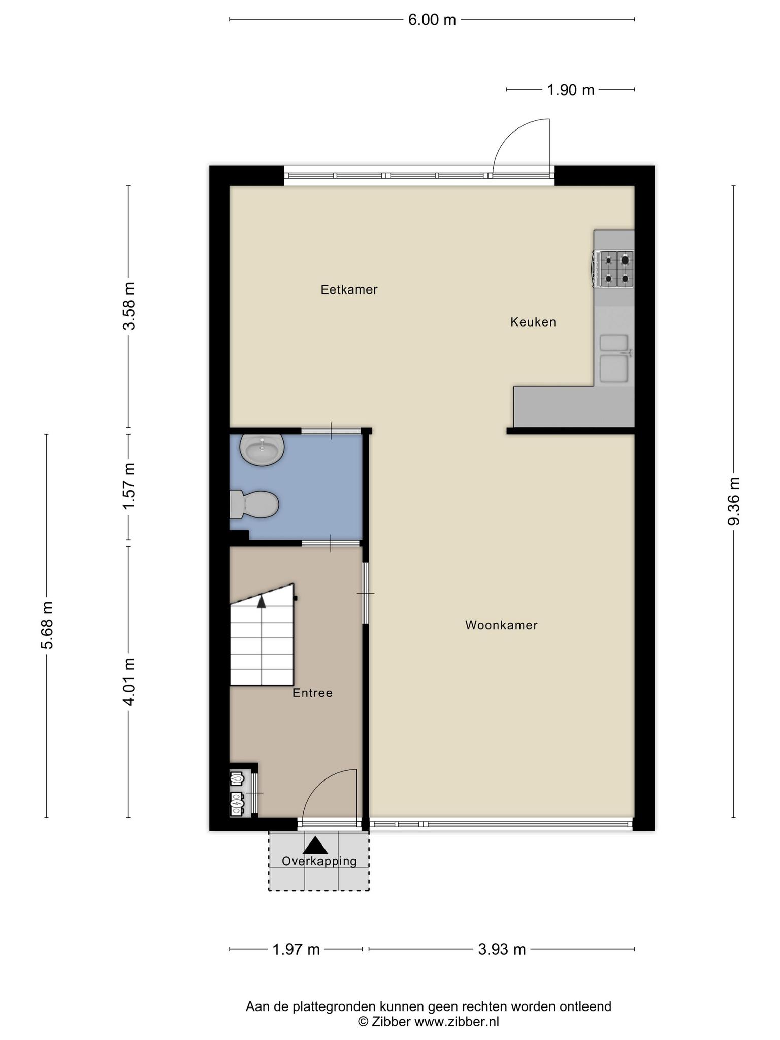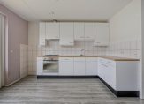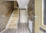 In de hal bevindt zich de trapopgang, meterkast, het toilet en toegang tot de woonkamer. De ruime woonkamer biedt voldoende mogelijkheden. En met een beetje inbeelding kun je van de keuken en woonkamer een mooie open woonkeuken maken. Zo is dit ook afgebeeld in de impressies. Verder is de keuken voorzien van een oven, gaskookplaat en afzuigschouw.