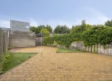 Zonnige tuin met een vrijstaande houten berging en een achterom. De tuin is georiënteerd op het westen, een prettige ligging voor avondzon dus!