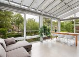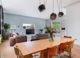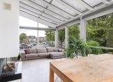De begane grond biedt een heerlijke leefomgeving met een slimme indeling in drie royale kamers. De serre is momenteel ingericht als eetkamer en zitruimte en dankzij de grote raampartijen een licht en uitnodigend middelpunt van het huis. Vanuit hier heb je prachtig uitzicht op de tuin met vijver en aanlegplaats. De woonkamer van maar liefst 60 m2 met hoge plafonds sluit naadloos aan op de keuken, die voorzien is van moderne apparatuur. Via openslaande deuren heb je toegang tot het balkon en een trap naar de tuin. Of je nu binnen wilt dineren of buiten aan het water, deze woning biedt volop mogelijkheden voor elke gelegenheid.