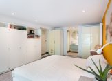 Op tuinniveau vind je verschillende ruimtes die zijn omgetoverd tot praktische en sfeervolle ruimtes. Denk aan een slaapkamer met eigen badkamer en sauna, een ruime berging en een hal met wasruimte. Via openslaande deuren stap je zo de zonnige tuin in – een fijne plek om te ontspannen aan het water.