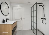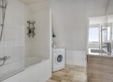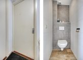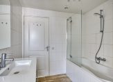 Aan de voorzijde van het appartement zijn de badkamer en de slaapkamer gesitueerd. De badkamer is voorzien van een wastafelmeubel, ligbad/douche en wasmachine/drogeraansluiting. Het toilet is separaat en keurig zwevend. Het appartement is voorzien van een eigen HR cv-installatie.