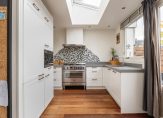 De keuken is in 2017 uitgebouwd met een lichtstraat en inbouwspotjes voor extra licht en sfeer. Tijdens deze verbouwing zijn beide zijwanden van de uitbouw geïsoleerd met glaswol, wat bijdraagt aan een prettig binnenklimaat.