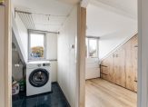 De tweede verdieping is verrassend ruim en beschikt over nog eens twee slaapkamers, beide met dakkapel. Daarnaast is er een praktische bergruimte met cv-opstelling en aansluiting voor de wasmachine. Extra handig: er zijn twee bergvlieringen bereikbaar vanaf de overloop.