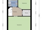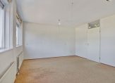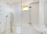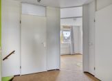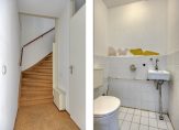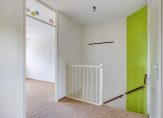 Door naar de eerste verdieping, hier vind je twee goede slaapkamers, de badkamer en een bergruimte met oa. de CV-ketel. De ouderslaapkamer bevindt zich aan de voorzijde en deze is ruim bemeten over de hele breedte van het huis, je kan deze kamer eventueel opsplitsen in twee slaapkamers (zie optionele indeling tussen de plattegronden). De badkamer is momenteel voorzien van een douche-bad combinatie, tweede toilet, wastafel en aansluitingen voor de wasmachine.