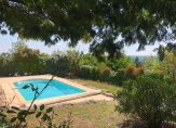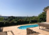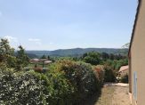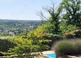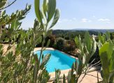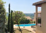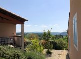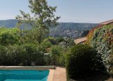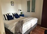 De eetkamer biedt toegang tot het balkonterras, waar lekker buiten kan worden gegeten en gedronken, met uitzicht op de tuin met zwembad en de heuvels aan de overkant van de vallei. Ook de ouderslaapkamer die zich op hetzelfde niveau bevindt, grenst aan dit terras. In deze slaapkamer rust je heerlijk uit op Auping bedden en goede matrassen (90 x 200). De slaapkamer is voorzien van een ruime linnenkast. Deze slaapkamer heeft een eigen badkamer met ligbad, wastafel en toilet.