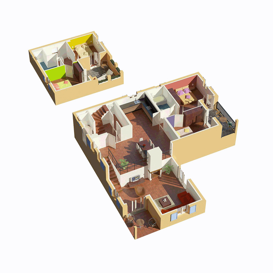 * Volledig ingerichte woningen met stoffering en meubilair;