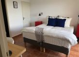 Twee slaapkamers, badkamer met douche, wastafel en toilet, overdekt terras.