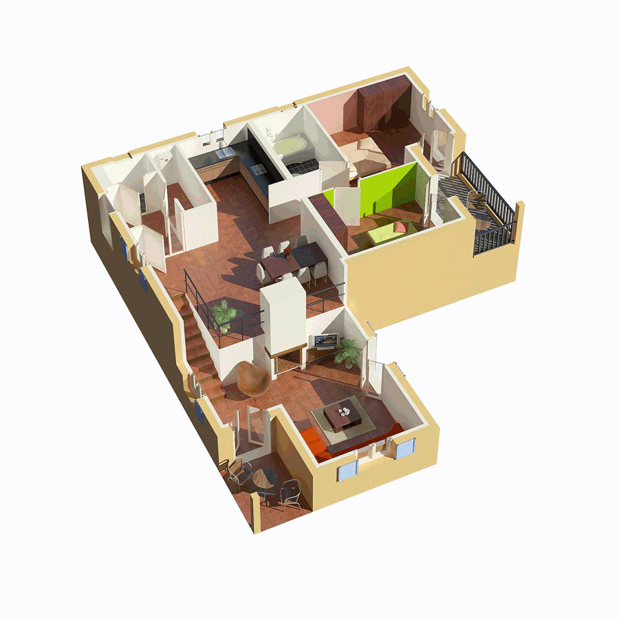 * Volledig ingerichte woningen met stoffering en meubilair;